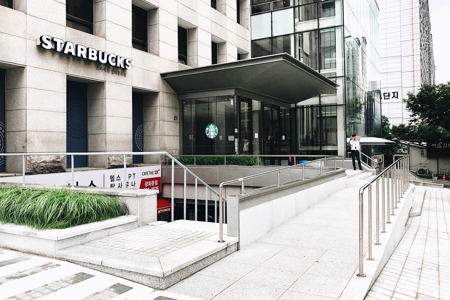먼저, 보행자 접근성을 향샹시키기 위해 방풍실을 돌출시켜 건물 주출입구를 노출시켰으며, 곡선형 계단을 적용하여 보행 편의성을 강화하였다.